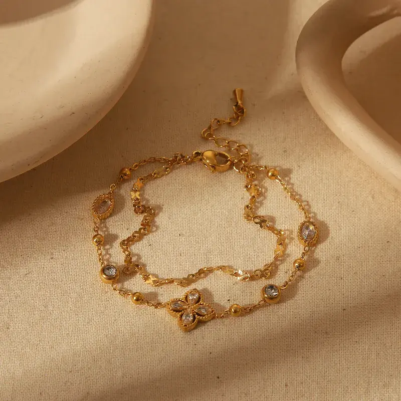Tanara Four‑Leaf Clover Bracelet Zircon French Style Jewelry